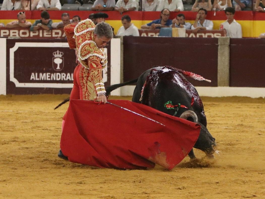 En muleta, el diestro de Bunyola realizó pases por alto para continuar con series por el pitón derecho. La faena ha tenido mayor transmisión que en el primero, tandas por ambas manos con una embestida un tanto tibia del astado. Media estocada en el primer viaje que se ubicó caída y un tanto tendida. Requirió el uso del verduguillo de manera certera. Palmas.