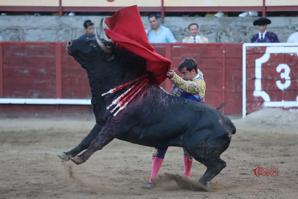 Inició la faena de muleta a pies juntos con pases por la mano derecha, repitió varias tandas ligadas por la misma mano, manteniendo firmeza en el centro del ruedo a pesar de la engañosa embestida del astado. Realizó un quite por luquesinas, pase de la casa y tomó el acero para ejecutar una estocada fulminante. Dos orejas.