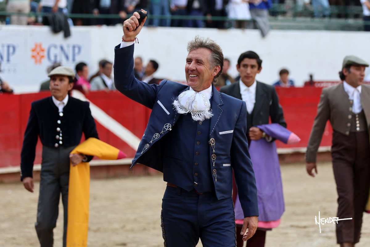A pie, con el de Tequisquiapan, “Huizache”, de buen juego, el valenciano Enrique Ponce le puso oficio al manejar el capote. Buen puyazo del varilarguero Alfredo Ruiz. Con la muleta, Ponce “esculpió” una obra de arte a través de su maestría e inmaculado toreo al ir metiendo al astado poco a poco al engaño hasta cuajar brillantes tandas por ambos lados, plenas de profundidad, temple, buen trazo y sello personal. Terminó de estocada en buen sitio para hacerse de dos apéndices en medio del contento general.