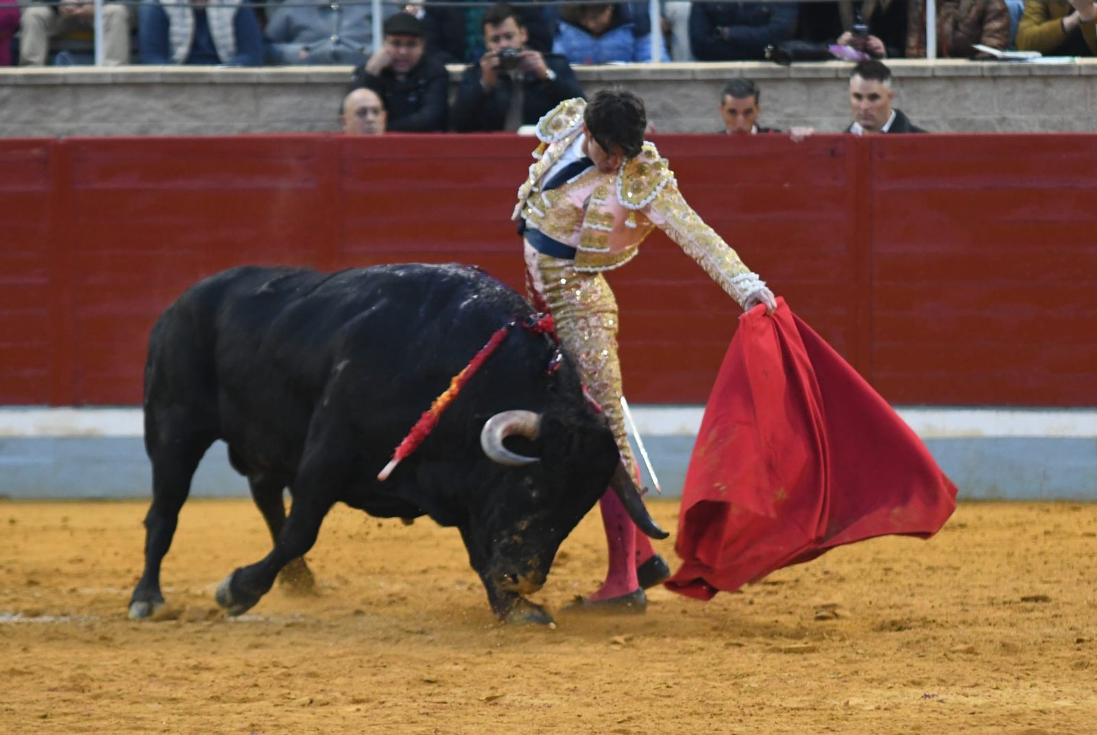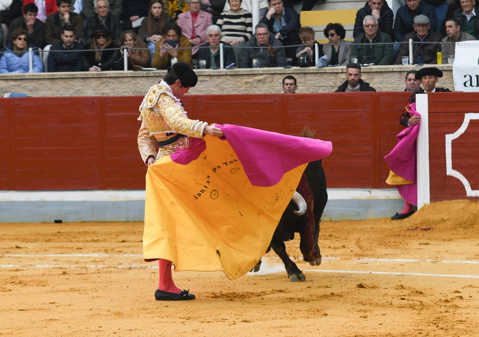 El tercero era «Basculista», número 34 y nacido en febrero del 21, que salió con otro aire, dejándose pegar capotazos y con movilidad, pero sin excelencia. Empujó con la cara arriba en el primer puyazo y humilló más en la segunda vara. Quitó Adrián de Torres por chicuelinas y el toro se movió. Iván García saludó tras dos excelentes pares de banderillas. Brindis personal de Adrián de Torres y estatuarios en los medios, pasándose al Cuadri literalmente por la faja. Primera serie de tanteo a diestras con un derechazo muy templado. Se dejó el toro con nobleza y le cogió el aire el torero en buena serie, haciendo sonar la música. Por el izquierdo el toro era otro y volvió a la derecha en una tanda de figura encajada y temple en la tela. Regresó al pitón izquierdo con el toro más remiso y con menos humillación pero también hubo mucha firmeza en el toreo de Adrián de Torres. Lástima que se fuera la espada al sótano.