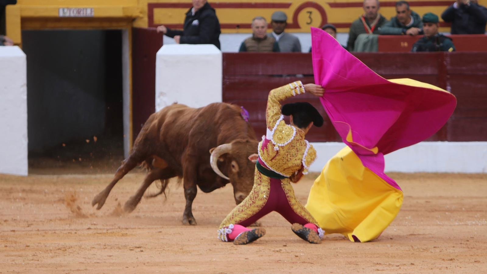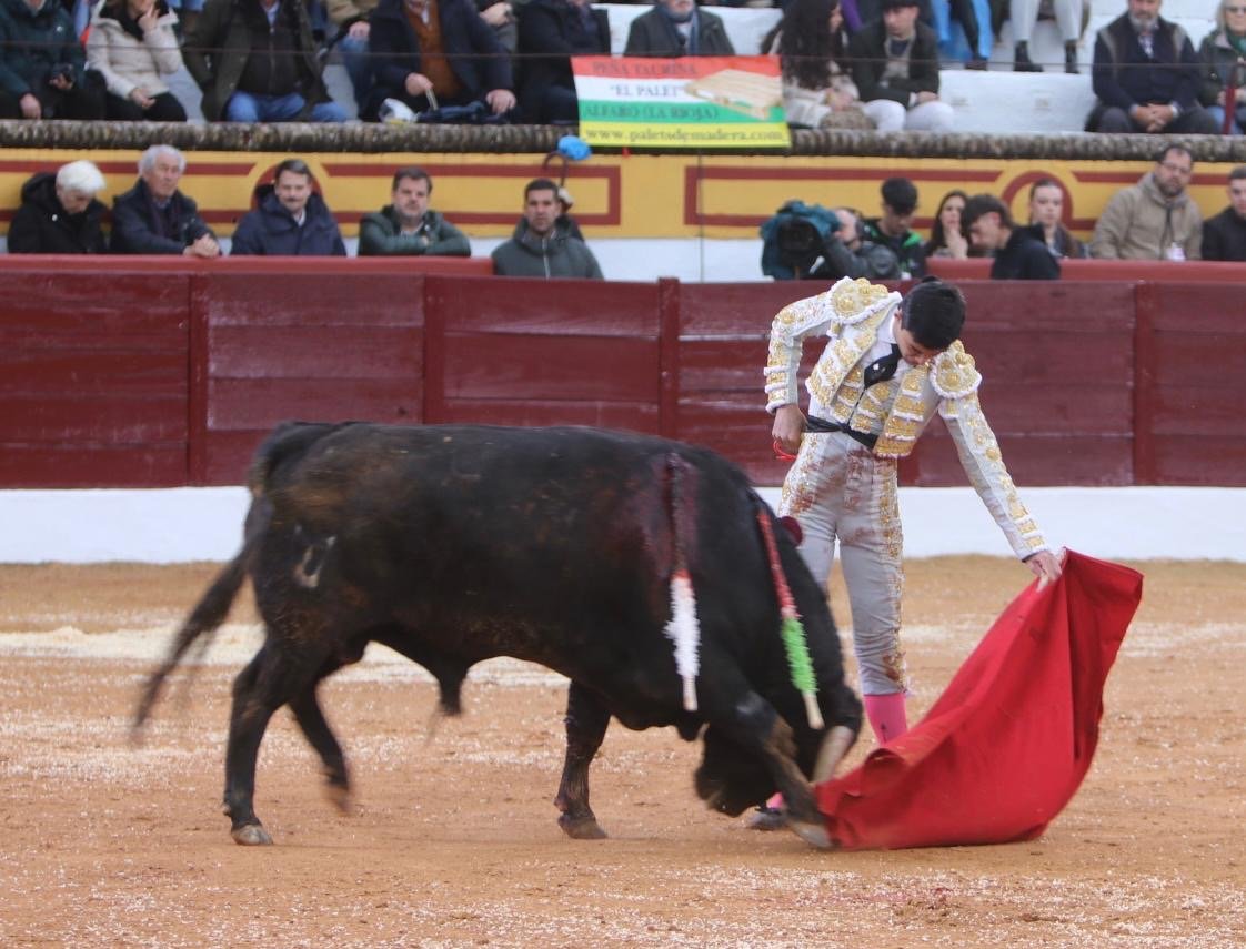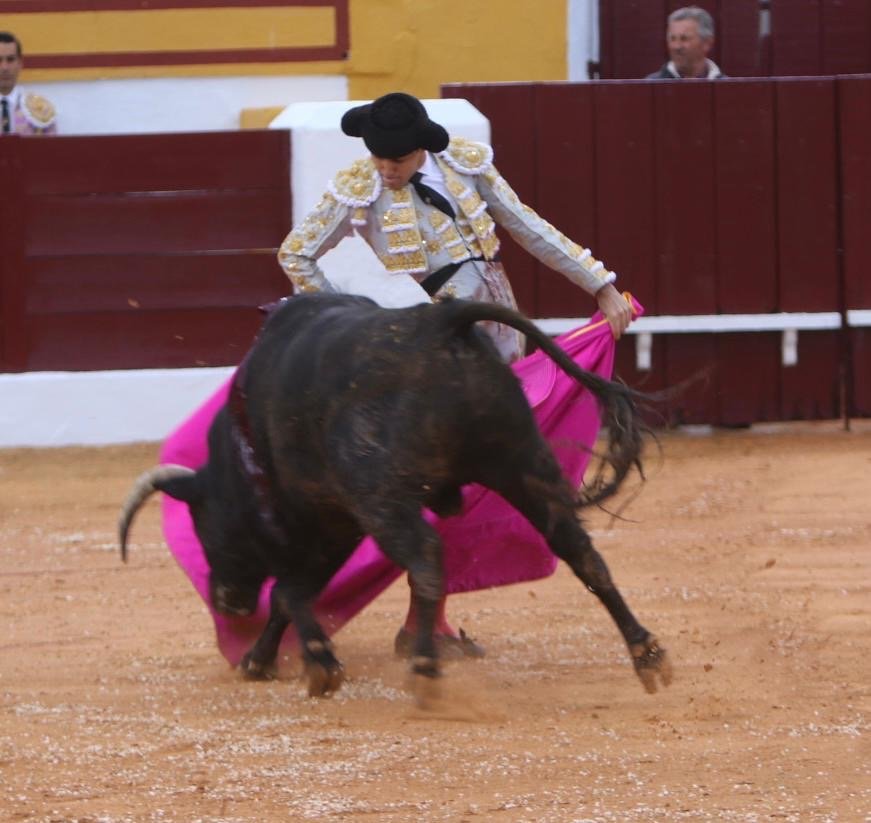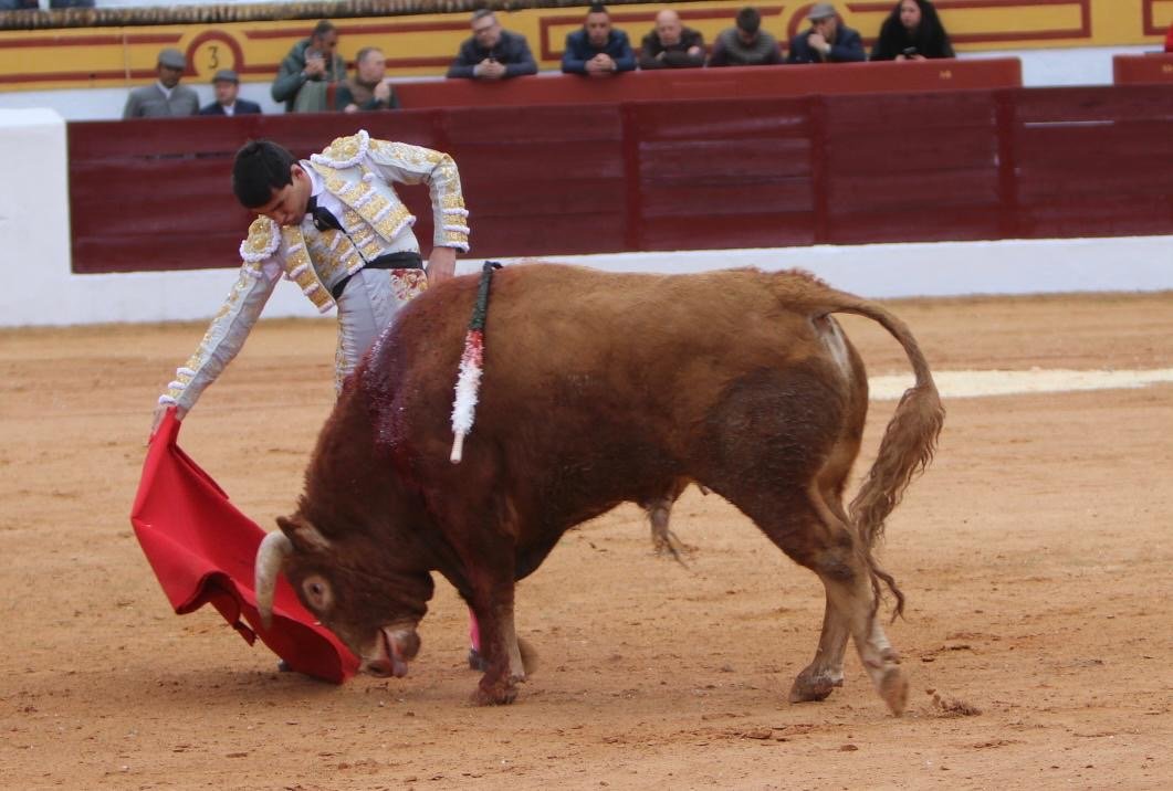 En su segundo tampoco logró centrarse con el capote a la verónica. Ya con la muleta inició la faena de rodillas sobre el albero, gesto que conectó con el público. Supo llevar al novillo por ambas manos, pisando terrenos comprometidos y siempre bien colocado. Sin embargo, la faena resultó acelerada y faltó templanza para redondearla. Tras pinchazo y estocada tendida escuchó dos avisos y, pese a la petición, saludó desde el tercio.