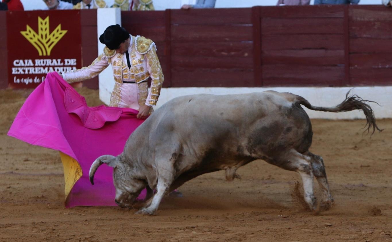 El debutante extremeño David Gutiérrez fue el gran protagonista de la tarde. Recibió a su primero a porta gayola y continuó con media docena de chicuelinas que encendieron al público.