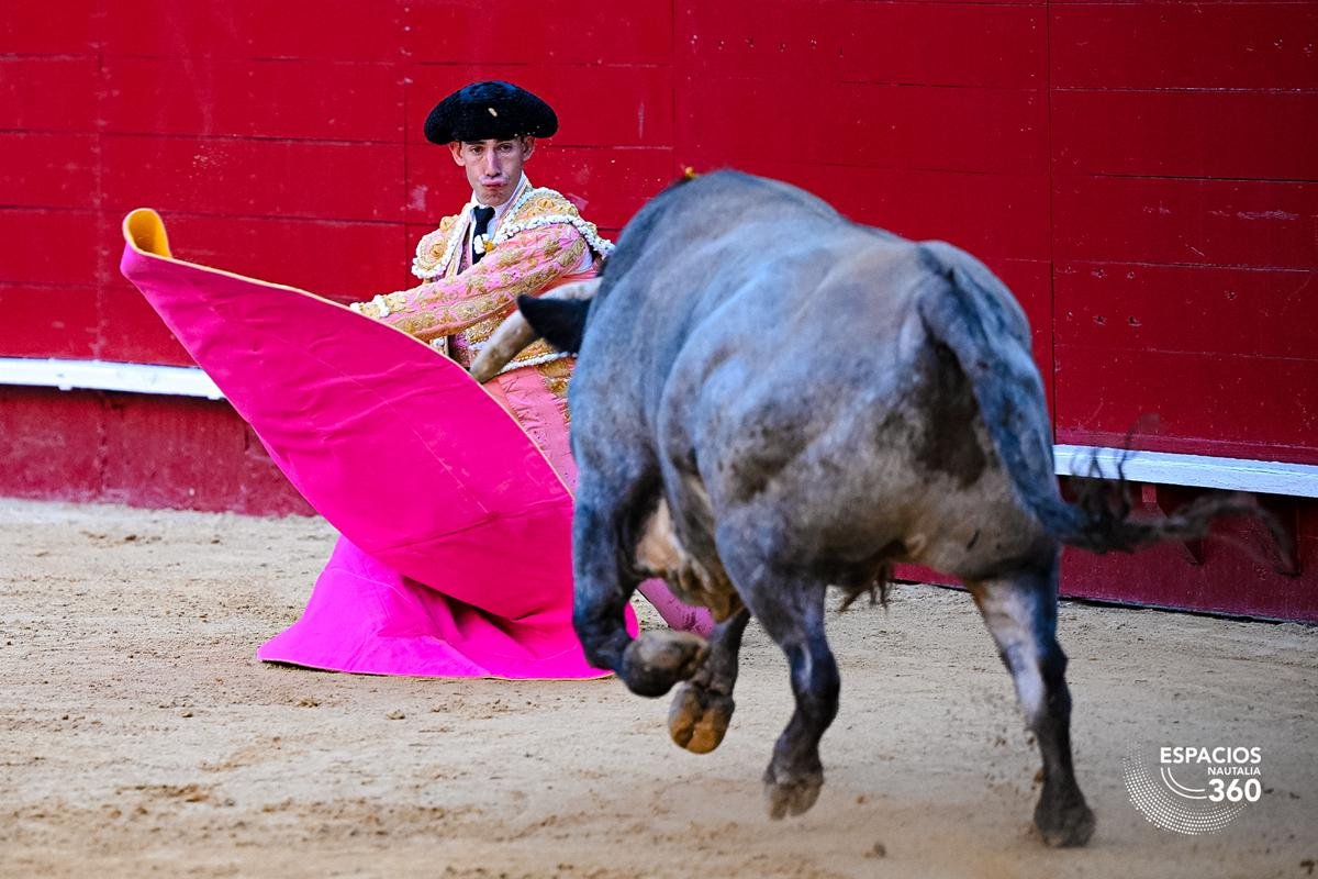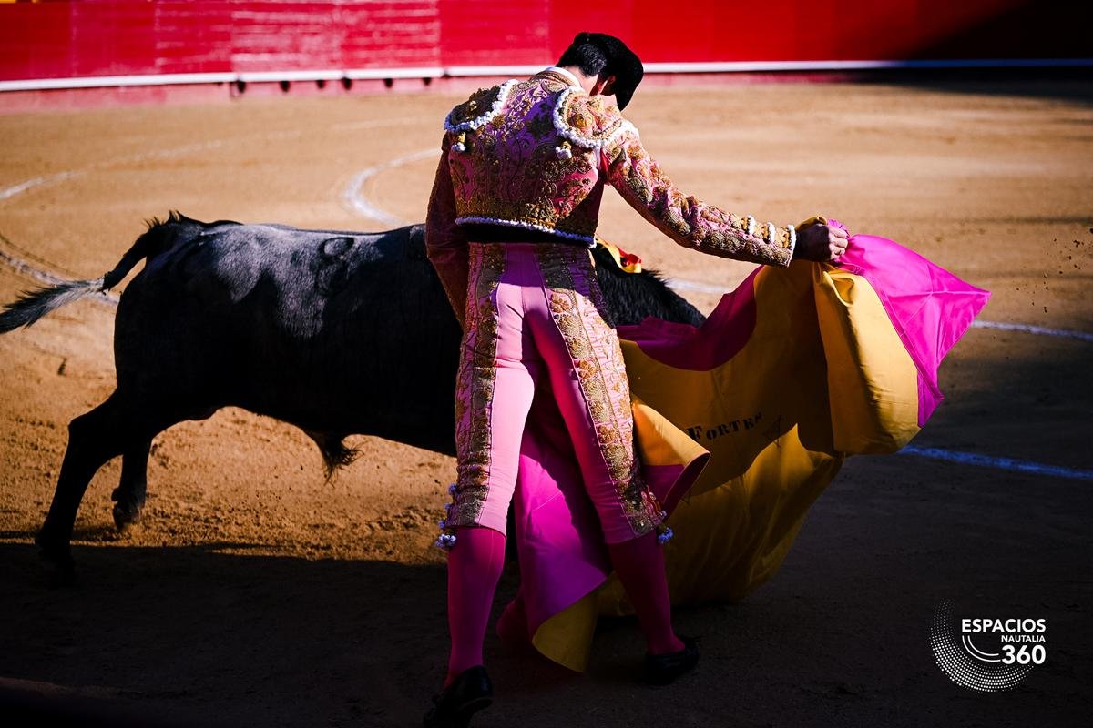 Cuarterón, número 84, guarismo 1, con 500 kilos, fue el primero de la tarde de la ganadería de La Quinta. En el recibimiento desarmó a Saúl Jiménez Fortes con embestidas sosas, aunque dejando entrever cierto peligro. En el primer puyazo cumplió sin excesos, mientras que en el segundo se arrancó con prontitud, metiendo la cara abajo y empujando con fijeza. Fueron dos buenos puyazos de Antonio Muñoz, que dejó el toro bien medido en el caballo. Fortes inició la faena de muleta por abajo, dando continuidad a una primera serie notable con la mano derecha. Logró ligar dos tandas por ese pitón, con ligazón y trazo, aunque con algunos enganchones propios de la condición del animal. Al cambiar a la mano izquierda, el toro se entregó menos y la serie perdió intensidad. Cerró el trasteo con unos ayudados por bajo, antes de entrar con el acero en la suerte natural, dejando una estocada caída. No hizo efecto y fue obligado a volver a entrar con el toro ya cerrado en tablas y con el descabello pasaportó al animal. Palmas.